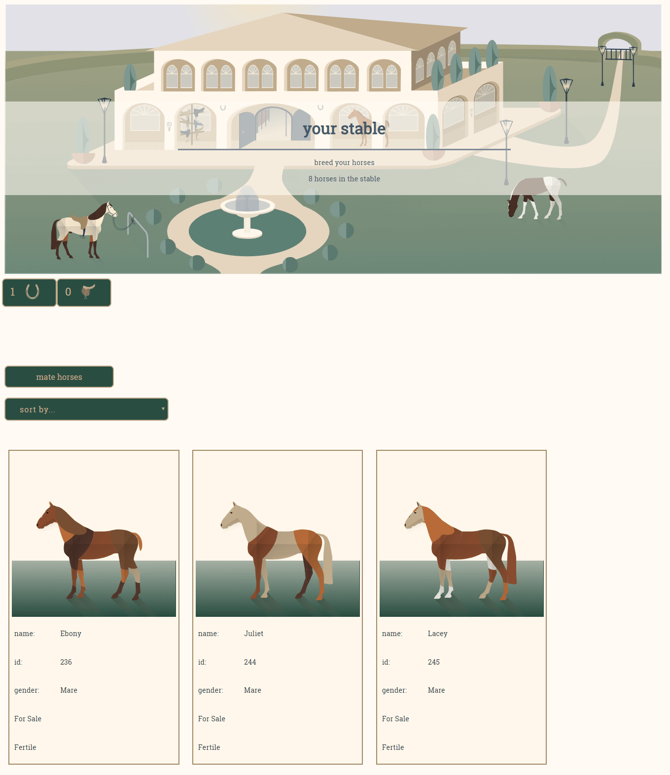 For mating two horses, one Stallion and one Mare are required by each user. If a horse breeder lacks a particular gender then it cannot breed and shall require another horse of opposite gender before breeding.
